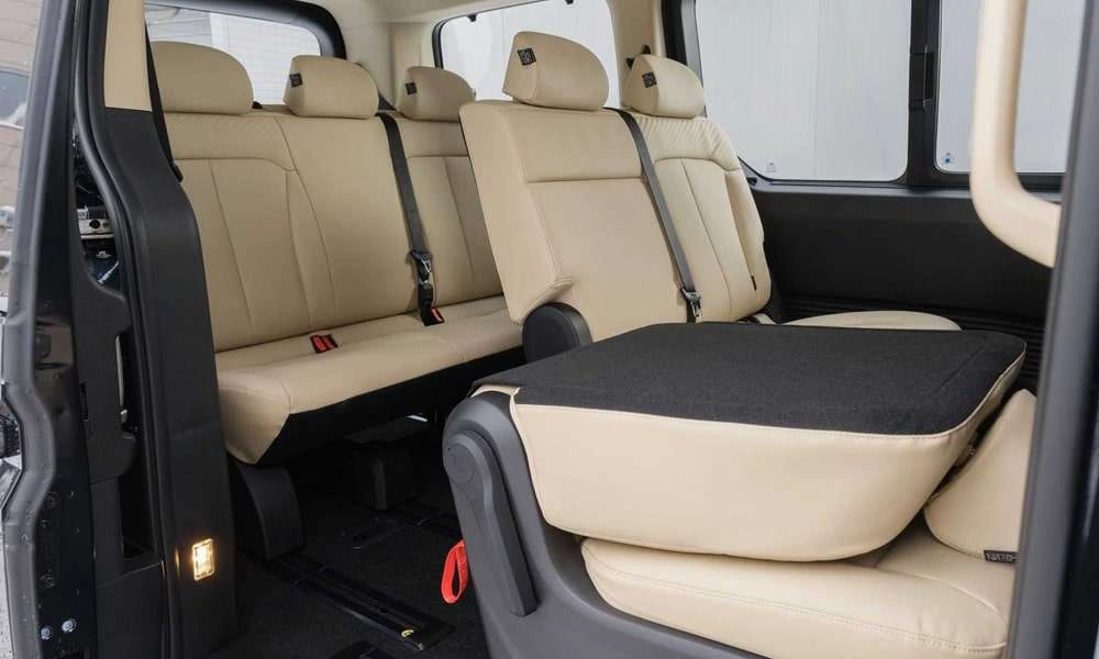 • Трансформация сидений салона (продольное перемещение сидений, возможность полностью сложить спинки 2-ого и 3-его ряда, возможность поднять подушку сидений 3его ряда)